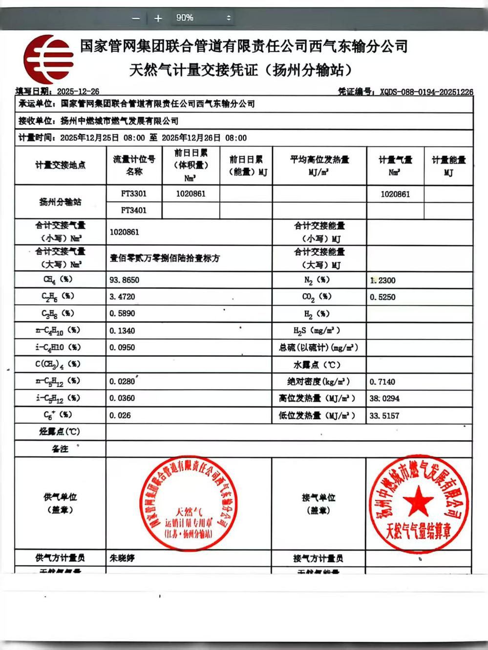 单位名称:扬州中燃城市燃气发展有限公司