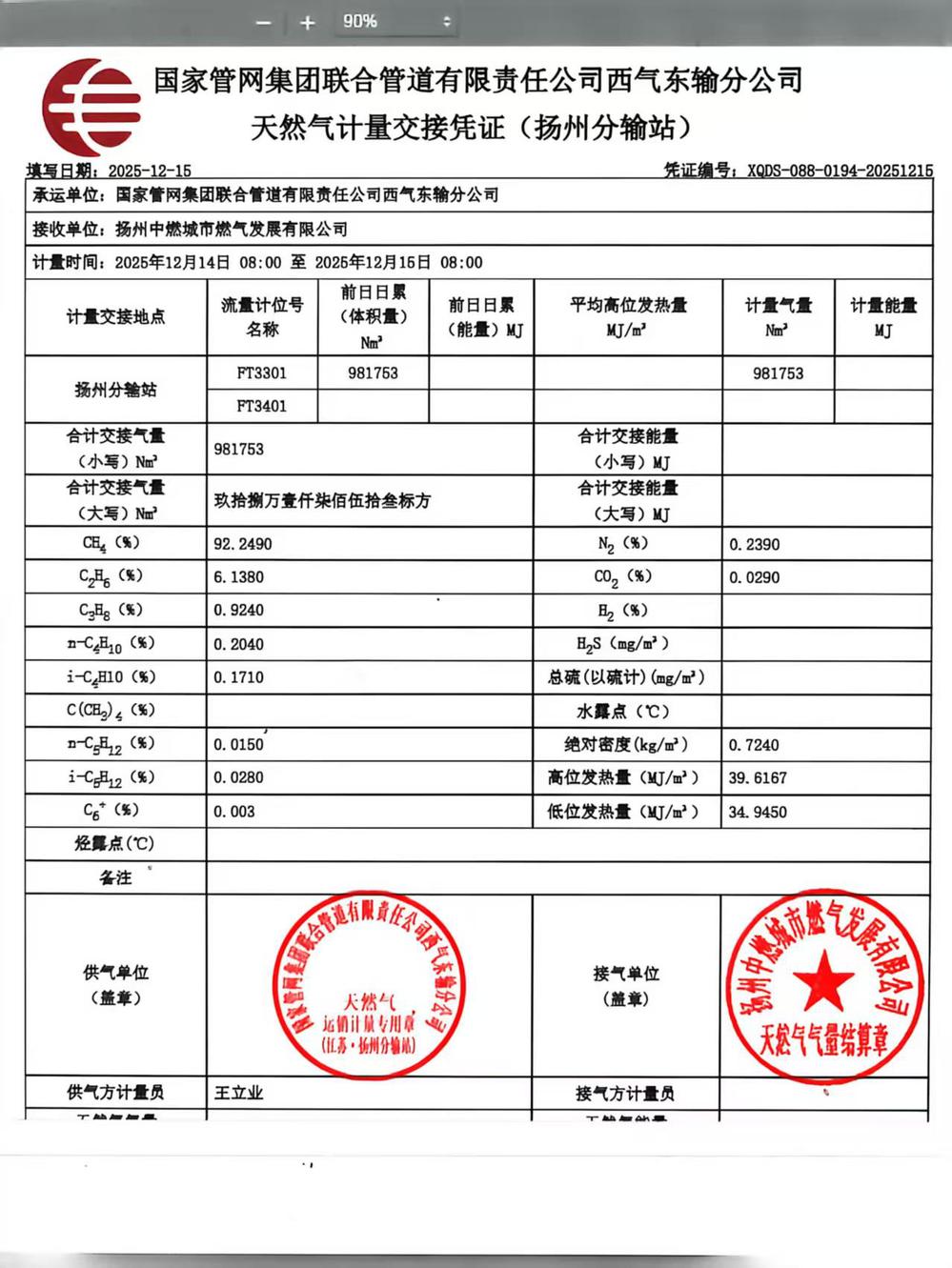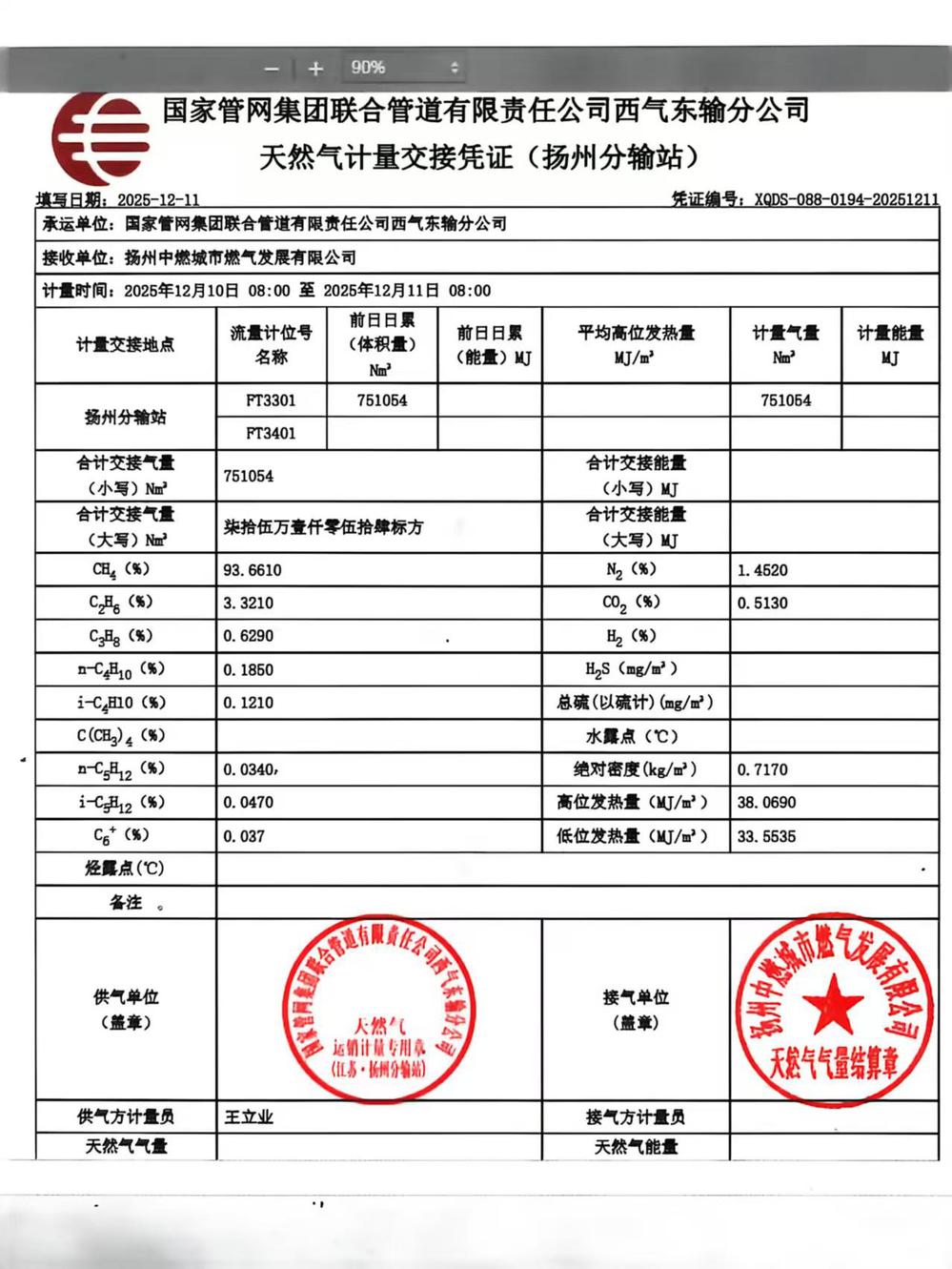 单位名称:扬州中燃城市燃气发展有限公司