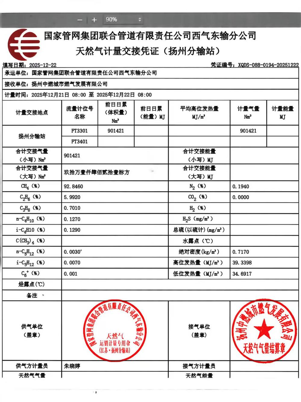 单位名称:扬州中燃城市燃气发展有限公司