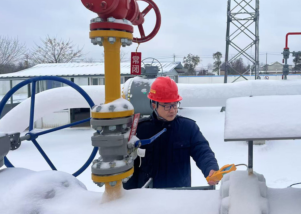 防寒潮保供气。低温降雪来临前,杨庙天然气门站和各分配站点提前谋划、主动作为,全力确保设备在低温环境下安全稳定运行。各站(点)全员出动,对消防设施、调压进出管口等关键设备加装防寒保暖装置,有效隔绝严寒,防止设备因低温出现冻裂、故障等问题。同时对电仪管线进行全面排查,及时更换老化线路,确保所有在用线路畅通无阻,压力仪表精准运行。