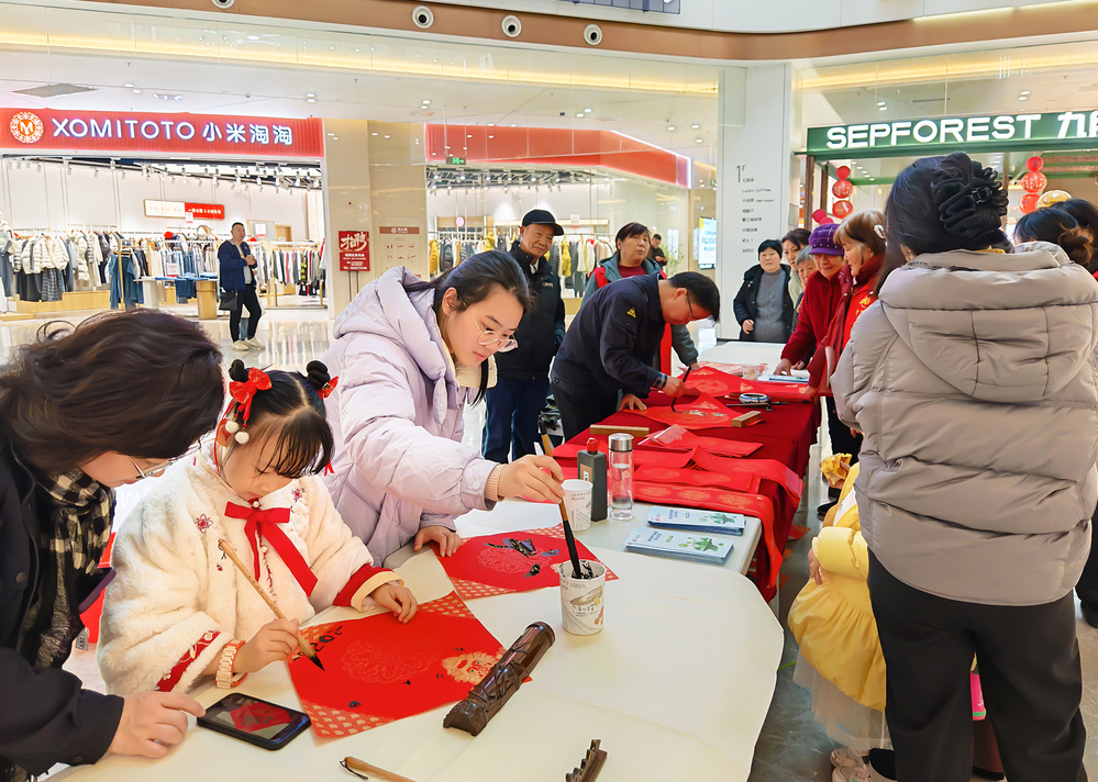 百花齐放春光好,万马奔腾气象新。活动现场墨香四溢,红宣铺展。志愿者们挽袖执笔、书写传统,传递美好。随着笔锋流转,一副副寓意吉祥的春联,一个个饱含深情的“福”字跃然纸上。喜庆的词句搭配圆润饱满的书法,引得过往群众纷纷驻足观赏、排队领取。不少群众主动“点单”,请志愿者书写个性化春联,更有老人和小朋友提笔尝试,体验亲手书写的乐趣。市民张女士表示,手写春联带着墨香温度,比印刷品更有年味儿,拿到手里格外暖心。