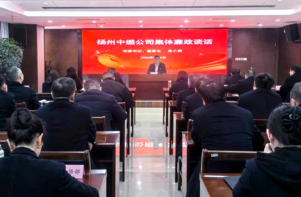 会上,扬州中燃公司党委书记、董事长吴小勇以《坚守廉洁底线 护航民生福祉》为题进行集体廉政谈话。
