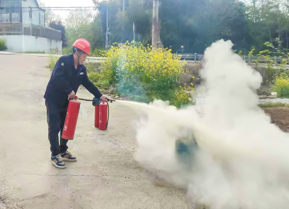 演练现场,各应急小组分工明确、行动迅速。疏散警戒组有序引导站内无关车辆和人员撤离至安全地带;灭火组规范熟练操作干粉灭火器,严格遵循“对准火源根部、由近及远喷射”的操作要求进行灭火作业;抢险组使用防护手套与湿毛巾关闭钢瓶阀门、切断气源。演练过程紧张有序、衔接紧密,成功将起火钢瓶火势扑灭并实施安全转移。